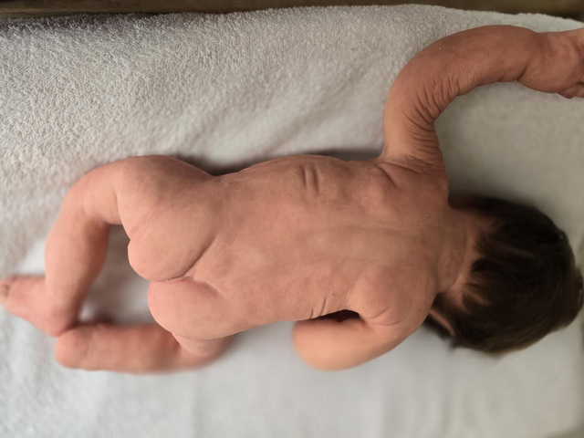 Como extras tienebarmadura en brazos y sistema de orina, su boca esta formada por dentro y abierta para tomar chupete o biberon