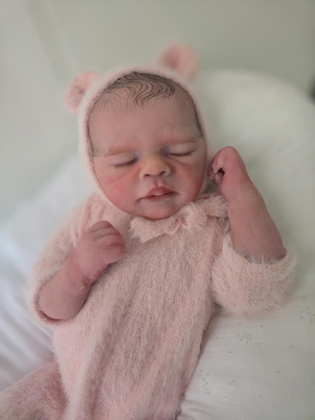 este modelo tiene armadura en brazos y pelo pintado, con un tono muy recien nacido