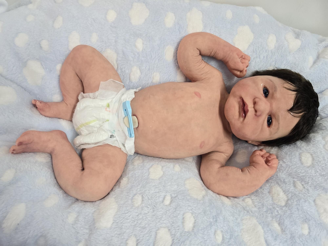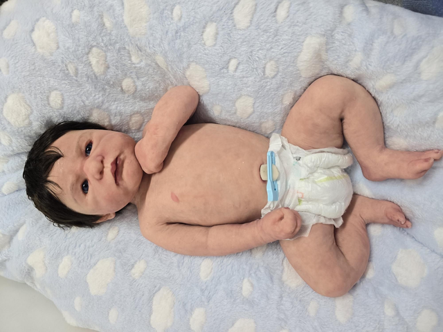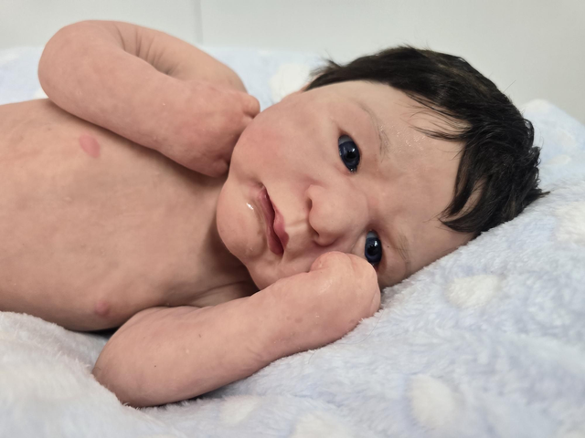 sus ojos fueron esculpidos a mano con silicona ya que este modelo es de ojos cerrados, lo que hace que sea exclusivo